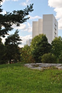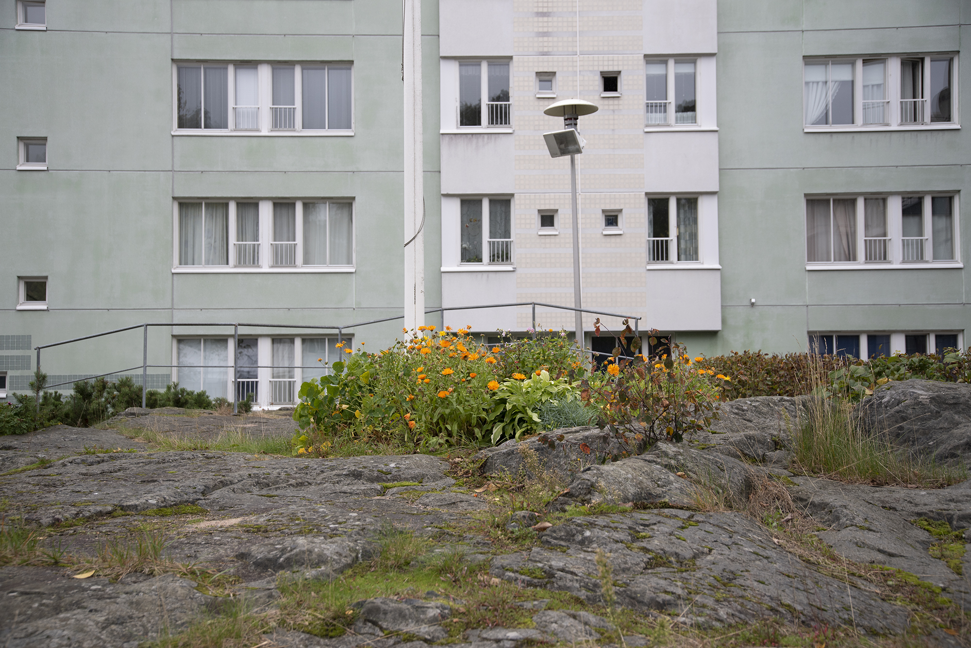 Yksi tunnusomainen piirre vanhemmille lähiöille on piha-alueen luonnontilainen kallio. Uudemmilla alueilla näitä ei enää juuri ole.